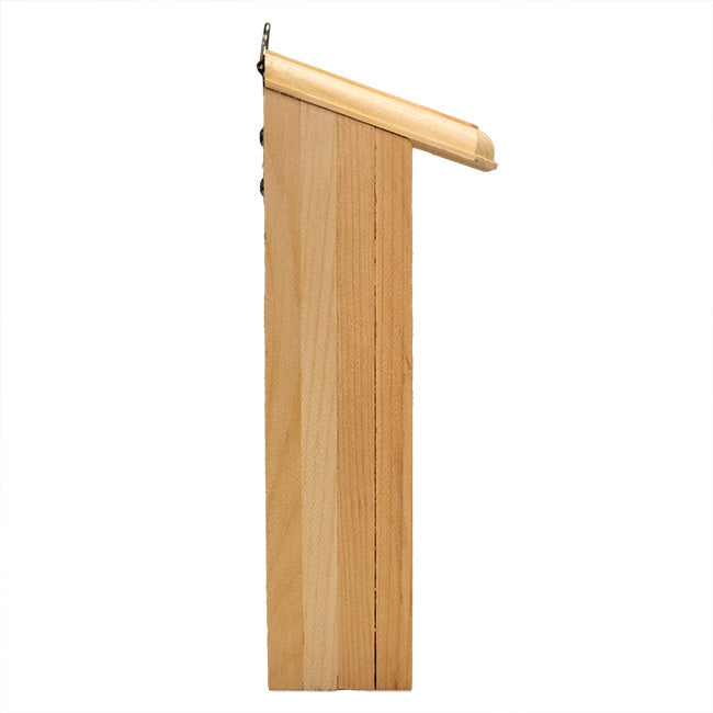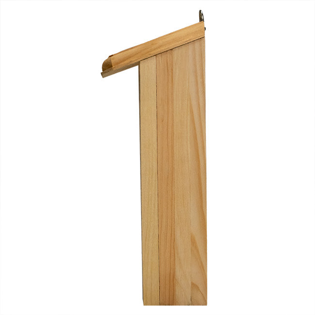 Celebrate pollinators and encourage them to frequent your garden by adding this Coveside Solitary Bee House to it. Several bee species, such as the blue orchard bee and the horn-faced bee, are quite docile and prefer to live alone, rather than in colonies. These gentle bees are fantastic fruit tree pollinators, and can be a welcome visitor to many gardens. They typically lay eggs within tree stumps, and this structure wonderfully mimics that design. Lines of predrilled holes occupy the front of the home, creating places for solitary bees to lay eggs. These eggs remain dormant throughout the colder fall and winter months, with the young emerging in spring to pollinate your garden plot once again. The pine body enhances the natural appeal, and a deeply sloping roof overhangs these entries, protecting them from rain. Its vibrant yellow tone will age to a lovely gray over time, for a lasting appeal, and a metal hanger on the back of the unit makes it easy to showcase the home against a wall or post. For a different look, use a branch hook through the metal loop to suspend the piece. Help increase populations of orchard and other bees by placing this Solitary Bee House in your yard. Made in the USA.