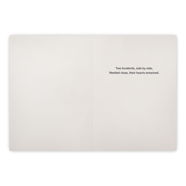 Give a heartwarming and personal greeting to a loved one with this magnificent and vibrant "Lovebirds" Greeting Card by Prime Retreat. This cream-toned card's adorable cover depicts a pair of bright and colorful lovebirds in front of a lovely heart and blue sky, standing closely together on a branch in a display of affection. The interior of the card sports a short poem to help deliver your heartfelt message, and you may add a personalized note underneath the text for extra customization, or leave it blank to fill in the details by hand later if you wish. This greeting card is perfect for anniversaries, weddings, and other loving occasions, and included with the card is a cream-colored envelope for easy delivery and standout presentation. Send an affectionate greeting to someone close to your heart by gifting them this "Lovebirds" Greeting Card. Printed in the USA.